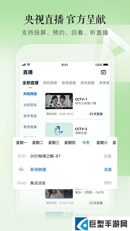 提供直播节目预约、回看功能,支持一键投屏、倍速播放、4K超高清、VR视频播放,精彩不容错过!