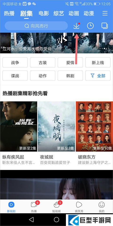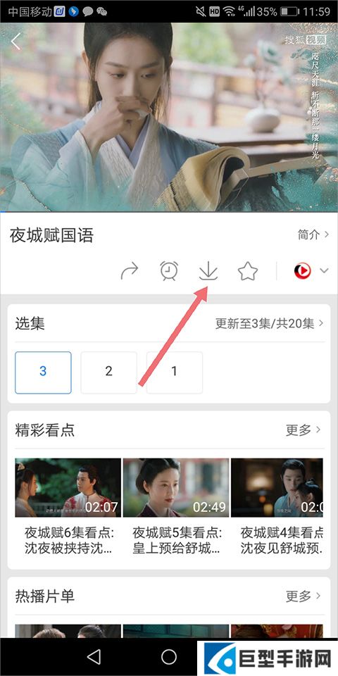 1、首先用户在电视剧播放页面中,点击播放画面下的下载图标(下图红色箭头所指区域)