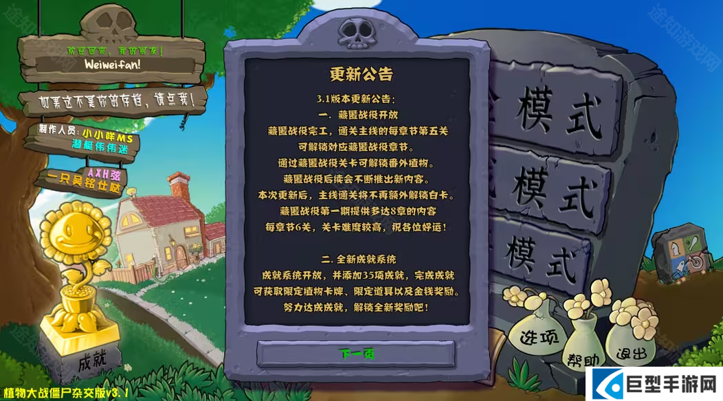 在3.1版本的基础上修复了大量bug,完善了成就获取,更新了迷你游戏