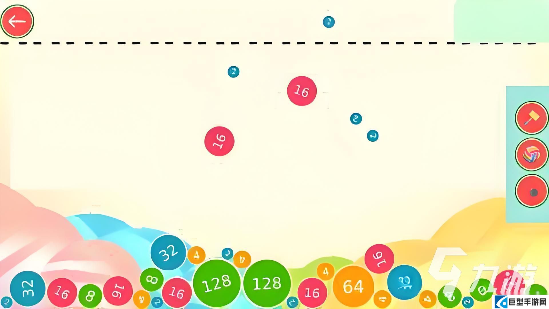 2048大合成中的所有数字全都以球状的形状出现,这些球状的数字会从空中掉落的地面上。当数字掉落到地面上以后,数字都会出现滚动的动态效果。所有的数字球都采用了不同的颜色进行搭配,让玩家们能更清楚的把边界给划分出来。玩家在合成数字的时候不能无脑的进行操作,而是需要将数字球的落点位置给判断出来才行。这样更方便大家用相同的数字球来融合。
