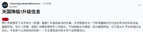 此前曾准确爆料战马工作室游戏消息的内部人士bertik11透露,《天国:拯救》升级版计划于2026年2月发布。