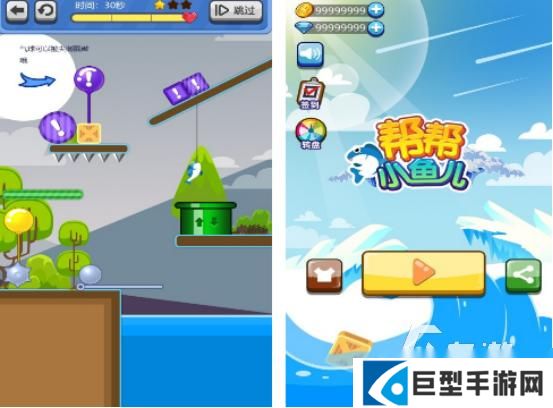 涵盖超多的关卡,为了顺利的帮助小鱼过关,你需要在每个关卡当中,仔细地观察屏幕的设计。利用点击相应的按键以后,就有机会顺利的通关。至于自己能获得几颗星好评,与玩家所用的时间有着很大的关系,不断的解锁各种可爱的鱼儿以后,能让玩家特别的有成就感,也是适合很多年龄段的玩家动脑筋的时候体验的一款。