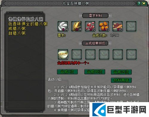 活动期间,大侠参与副本、日常活动可获取食材制作四种腊八粥赢取经验、稀有道具等奖励,春启积分可兑换额外好礼。