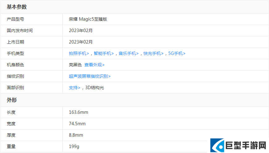 荣耀magic5至臻版参数配置价格