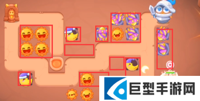 4、放置几个月亮减速,萝卜附近放置烟花防空,之后将障碍物全部清理。