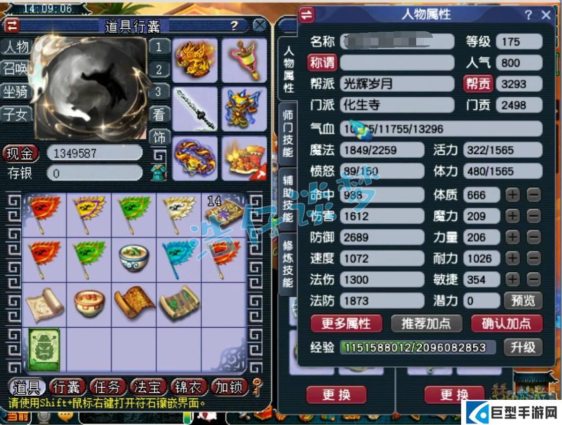 梦幻西游175级PK化生寺装备展示图175级精品化生寺,愤怒5特技装备平均14锻,各种PK都吃香!