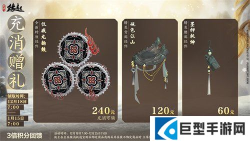 充消好礼12月18日更新,活动期间充消达到指定档位即可获得精巧挂件奖励,12月18日7:00至12月25日7:00期间享三倍积分!