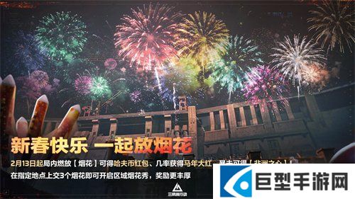 2月13日起,全新烟花玩法开启。干员在局内燃放「烟花」后,有概率获得哈夫币红包、马年大红、暴击更有机会获得「非洲之心」!在指定地点上交3个「烟花」开启烟花秀,将获得更为丰厚的奖励!