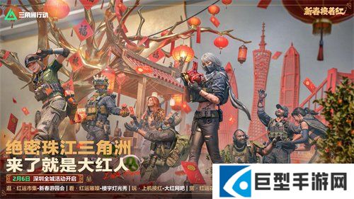 2月6日,绝密珠江三角洲活动开启,各位干员可前往深圳新春游园会逛红运市集、看红运璀璨灯光秀、玩大红网吧、赏红运花来花市。另外还有红运传九州活动,在全国“九个洲”的城市中将有惊喜内容登陆,各位干员可关注三角洲的各大官方账号,接收具体的信息与日程。