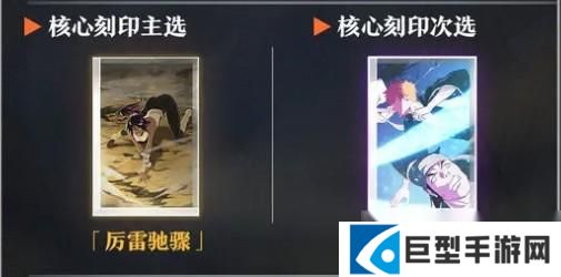 次选的话,大家可以选择铜骨·上这个刻印,也是可以带来了一些防御加成,因为目前她的弱点就是在防御数值上面没有其他的技能可以使用,有了这个刻印的话,也会增强夜一的生存能力,其他的方面就是核心刻印方面,大家可以选择一个能够提升她爆发输出能力的刻印,比如说厉雷驰骤,这个刻印的话,一般来说就是为角色的爆发伤害带来足够大的提升,这个位置次选的话,还有空降瀞灵庭,这个刻印其实很多玩家没有给她使用过,如果跟她搭配在一起的话,会让夜一的机动性更强一些,在战场上的灵活程度也会更上升一个等级。