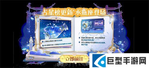 神秘【水瓶座】占星阁璀璨开放!参与转盘并完成赠礼任务获取占星石,可兑换传说星座礼物、星座星环、聊天气泡等稀有收藏品。成为星座代言人可获得签名定制款会议面板,尽享专属星座奖励。