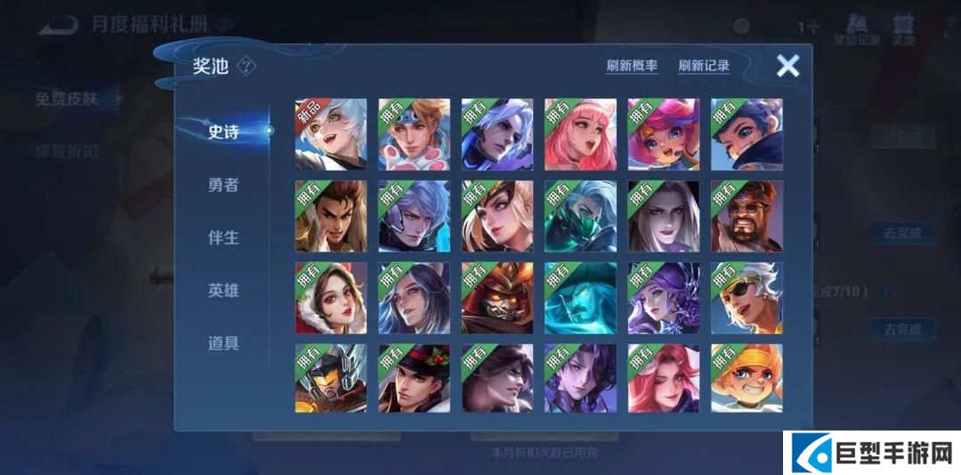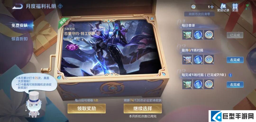 所以大家不用着急,120次拿史诗皮肤的奖励是可以跨月累积的,和之前版本一样,最多三个月肯定能拿到保底史诗皮肤。