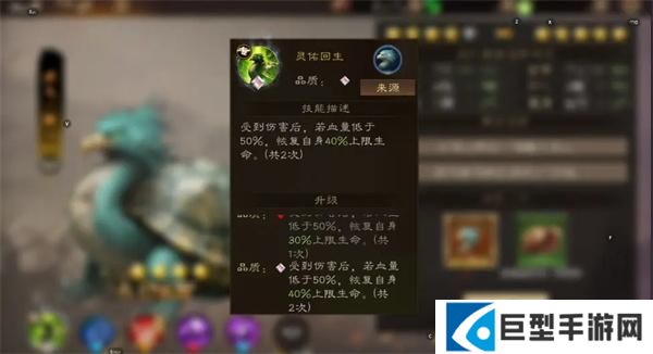 受到伤害后,若血量低于50%,恢复自身15%上限生命,最大40%。(共2次)
