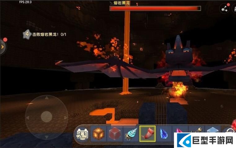 5、将制作好的熔岩号角放在快捷栏,然后使用熔岩号角点击熔岩之石,成功解除封印,熔岩之石消失,会召唤出熔岩黑龙,比远古黑龙更强大的存在。