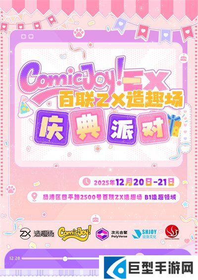 2025年12月20日至21日,ComicJoy EX将在百联ZX造趣场举办。本次活动聚焦二次元文化爱好者需求,以搭建优质交流平台为核心目的,邀请广大爱好者暂离日常忙碌,共享专属文化交流时光。