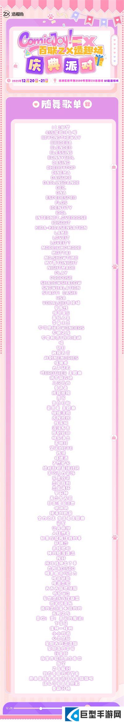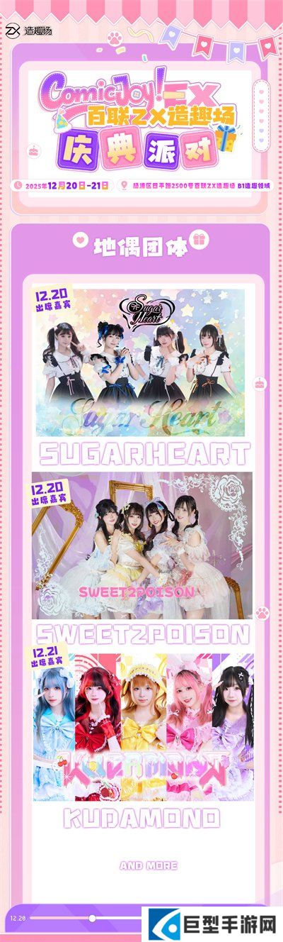 #地点:杨浦区四平路2500号百联ZX造趣场 B1造趣领域#时间:2025年12月20日—12月21日 每日13:00—19:30温馨提示:建议提前规划行程,准备好相机及应援物品,与我们共创精彩瞬间!
