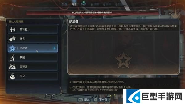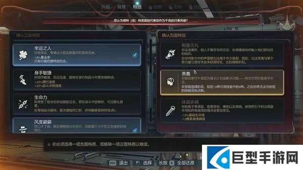 播片结束后会让我们捏脸和选择特质技能。关于特质看玩家的个人游戏风格,笔者选择的是执法者。