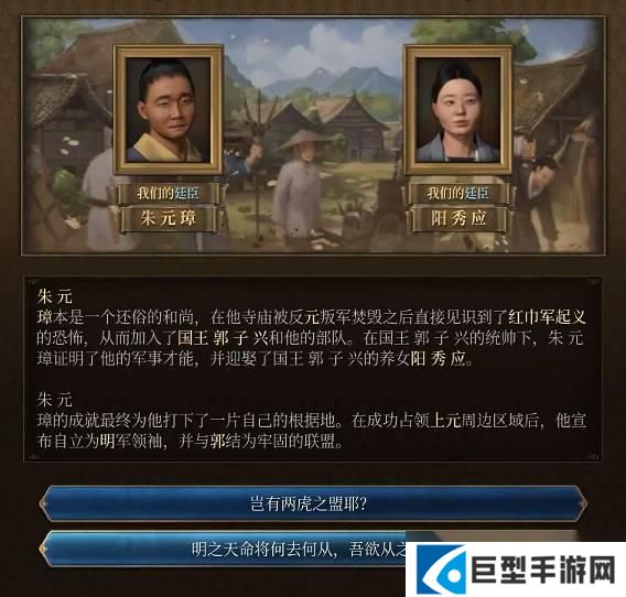 4、在任务对话选项中选择第二个即可扮演朱元璋。