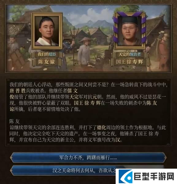 3、注意出现任务对话选项时选择第一个直到1353到1355年朱元璋登场。