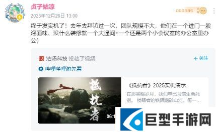 贞子姑凉表示:“终于发实机了。去年去拜访过一次,团队规模不大,他们在一个进门一股泡面味、没什么装修就一个大通间+一个还是两个小会议室的办公室里办公)。”