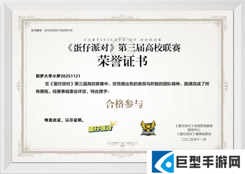 本次系列赛事的顺利开展与广泛影响,得益于赛事与校园文化建设的深度融合。赛事不仅深入学生群体进行广泛宣传,也获得了【团中央第二课堂】的认可与支持,所有参赛选手均获得了由“第二课堂”颁发的荣誉证书。这不仅极大提升了赛事的正规性与选手的荣誉感,也肯定了蛋仔高校赛事在锻炼学生群体当中产生的积极价值。
