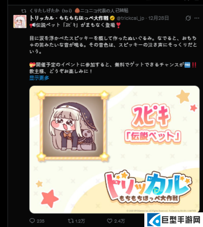 最后还是没抵挡住斯皮奇的诱惑,在X官宣下载trickcal。看来是要到游戏里补番去了。作为最强斯皮奇的非官方推广大使,每日在X更新自己的游玩进度和转发点赞官方动态。