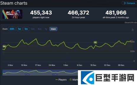 据Steam官方数据显示,近期《ARC Raiders》在Steam上的玩家峰值人数仍维持在46万左右(1月4日46.6万),相较之前的最高值(48.1万),玩家留存率约90%。