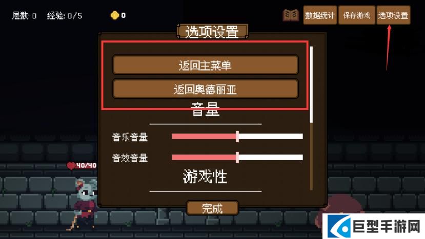 A:在地牢右上角点击“选项设置”会弹出弹窗,在弹窗中点击“返回奥德丽亚”后即可结束本次地牢探索。
