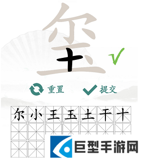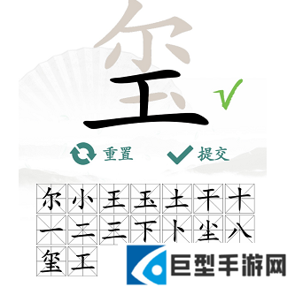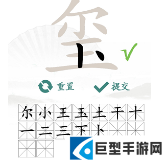 答案:【尔、小、王、玉、土、干、十、一、二、三、下、卜、尘、八、玺、工】