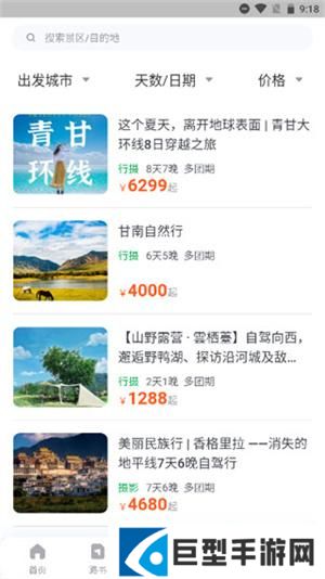 4、点击进入主推活动,可以筛选类别、目的地、天数和价格,查看推荐的自驾团队。