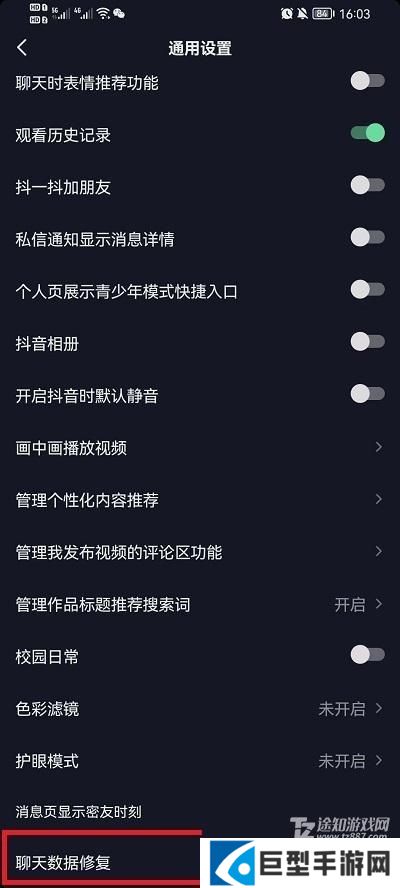 4、最后在通用设置所有功能中,滑道最下方,就可以看到【聊天数据修复】对自己的聊天记录进行修复。