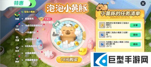 小黄豚图鉴活动开启,1月23日至2月22日期间,集齐指定联动外观(「卡皮巴拉希哩哩」、「泡泡小黄豚」、「水晶蜜豚」等7款道具),即可兑换联动新主页主题、吐孢子特效、吞噬特效及主页背景!