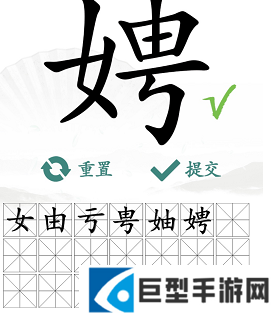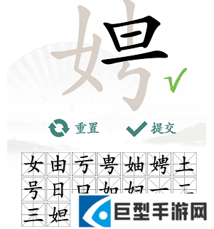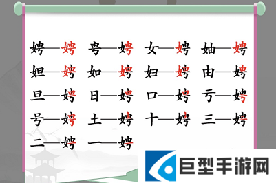 答案:【女、由、亏、甹、妯、娉、土、号、日、口、如、妇、一、二,三、妲、旦】