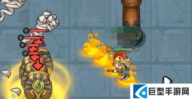 然后需要躲在棺材后面,等他释放全屏攻击,放完后在出来继续利用火凭攻击他,攻击他的时候需要和他拉开距离,不要被他摸到,这个过程中他会使用捶地龙车等多种攻击,大家需要规避,之后等他召唤棺材后继续躲在棺材后规避全屏伤害,然后再拉出打,就这样循环打下去就可以攻略他了。