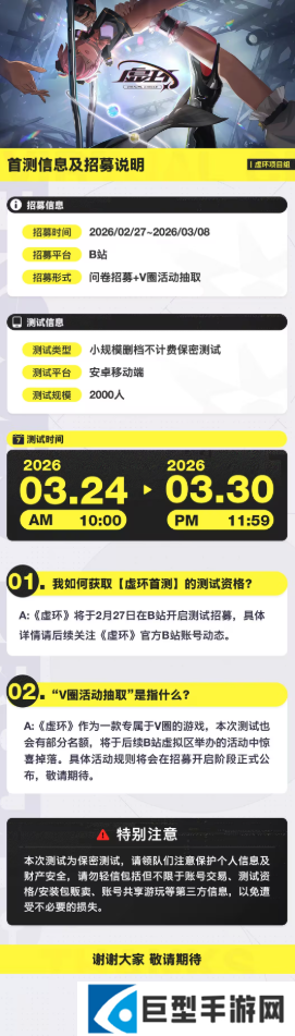 《虚环》首次测试预计于2026年3月24日正式开启。