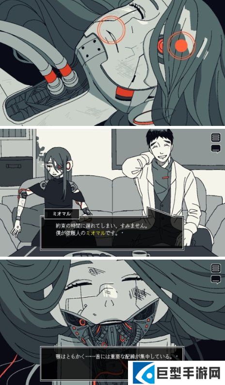 《余尘赋生》玩法围绕针真的内部修理工作,与剧情探索紧密结合,仔细观察针真的内部结构,通过找不同、连线解谜等小游戏来进行修理,维修过程的发现也是探究角色过去的钥匙。游戏收录大量与委托者望centrifuge及针真的对话,玩家的选择将会影响他们的态度与反应,从而触及其内心深处,逐步接近故事的核心。在场景转换的移动过程中,玩家可以通过收听车内广播,了解游戏的世界观与文化背景,不同的频道能提供更丰富的剧情细节,甚至会触发与角色间的对话内容。