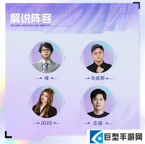 本次线下赛的解说阵容不仅有各位观众们喜欢的峰、乌德斯与JOJO在解说席为观众们带来最专业的解说评述,英魂之刃策划志强也将再次担任解说嘉宾!