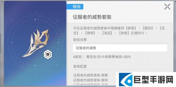 玩家如果想要玩装备系统,那首先就应该了解核心的规则,每个角色都有6个装备槽,在搭配的过程中就要遵循两件套装加上4件套装的逻辑。目前游戏就会有12种套装的效果,而且两件套效果没有办法叠加,在选的时候那就需要更加的精准一点。这里就可以先说一下核心战斗力的四件套,如果经常性用一费卡牌打输出,那自然就应该选择征服者的威势套装。4件套可以让一费卡牌的暴击率直接提升到35%。像雷欧娜就会依赖于一费卡,穿上之后就可以直接提升输出力。