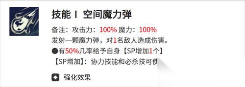 空间魔力弹和伯德家族的矜持是兰吉尔斯的主动技能,空间莫丹谈是一个攻击力和魔力均为100%的技能,这个技能可以对敌方1名敌人发送1颗带有着高额伤害的魔力弹,魔力弹命中目标的时候还有50%的可能性会给自身附加上1个sp,sp指的是协力技能和必杀技,sp增加后兰吉尔斯的协力技能和必杀技的可用点数都会出现增加。