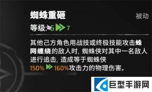 蜘蛛人在漫威秘法狂潮中的核心天赋是“蜘蛛重砸”,该能力可在队友释放战技时触发,将负面效果施加于敌人,并对被蛛网缠绕的目标进行一次追击。这次追击造成高达180%攻击力的物理伤害,同时为蜘蛛人积攒30点终极能量,加快大招释放节奏。这一机制使得蜘蛛人在配合具有频繁战技输出的队友时表现尤为突出,能量获取更加稳定,战斗节奏更流畅。