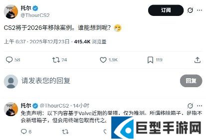 知名射击游戏分析师兼数据挖掘专家Thour分享了关于V社旗下第一人称射击竞技游戏《CS2》未来经济系统的预测。据这位内部人士透露,V社计划最早于2026年完全停止在游戏中添加新武器皮肤箱,转而用其他获取道具的方式替代。
