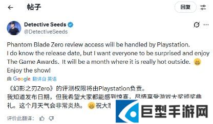 “《影之刃零》的评测权限将由PlayStation 负责安排。我确实知道发售日期,但我希望大家能在TGA上获得惊喜并享受这一刻。发售时间会是在一个天气非常炎热的月份。祝大家观赏愉快!”