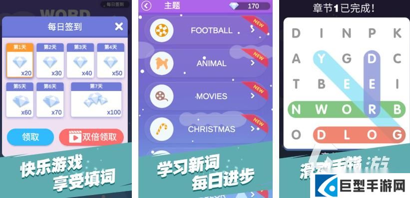 《全民填单词》这款游戏拥有上万个高频英语词汇,通过精心设计的玩法,可以让所有想要学习英语的玩家逐步精通。游戏将填字玩法与英语词汇结合在一起,玩家可以通过滑动屏幕的方式将英语字母全部连接起来。目前有简单、中等和困难三种玩法,每个模式的词汇量以及难度也完全不同,每日签到的话还会有钻石道具赠送。而独特的翻译功能还可以让玩家在拼写英语单词的时候快速理解其意思并掌握。