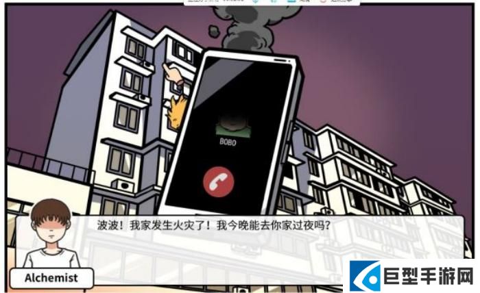 回到家后自动存档,发现家里着火,虽无人员伤亡,但珍藏的影片全没了。今晚只能去别处借宿,因此想到了自己的好友波波。