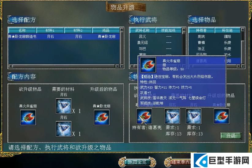 让诸葛亮在战场上发挥最大作用,装备搭配可是重中之重。作为游戏中最顶级的军师型武将,他的装备选择直接影响战斗效率和生存能力。主武器首推真火朱雀扇,这把扇子不仅能大幅提升计策伤害,还能增加智力属性,让计谋发动时更加致命。副手装备可以选择玉玺,它能有效提升护甲和抗性,面对敌人的物理攻击和策略攻击时更稳得住。防具方面优先考虑道袍,高生命值加成和回避率能让诸葛亮在混战中站得更久。