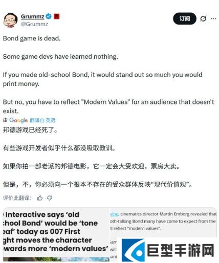 但他同时强调,邦德这个角色本身一直在变化。“这个角色随着年代不断进化,而我们显然要反映当下的价值观。所以它不会是那种老派的邦德形象,那样在今天只会显得很冒犯、很不合时宜。他是一个现代的家伙。”