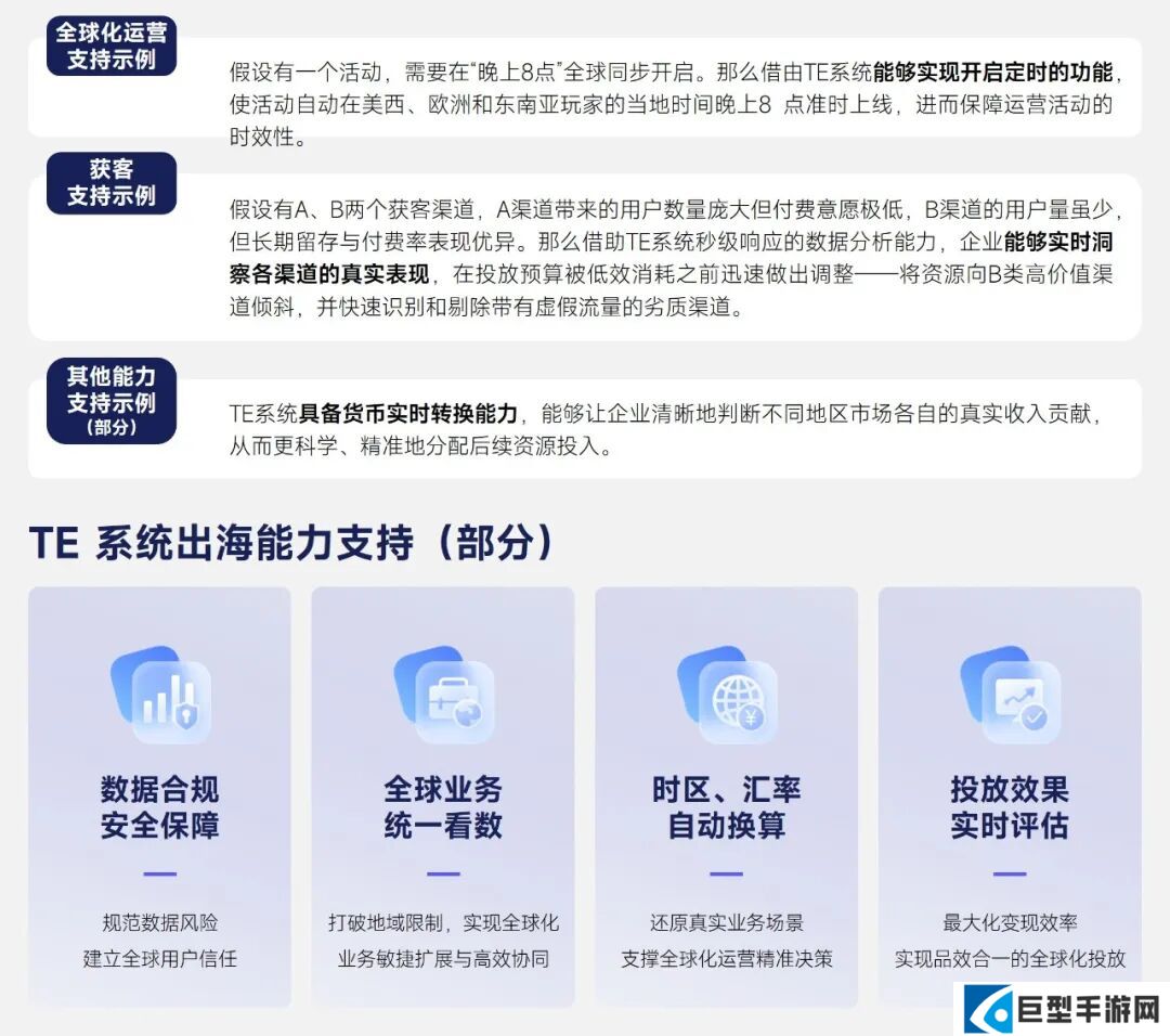 如前所述,更多高品质游戏呈现“全球通吃”的特征,虽然能较大程度带动流水增长,但对企业同时布局各海外市场的能力提出较高要求,尤其是在数据合规及文化合规风险日益增长、买量获客愈发复杂的当下,寻找高质量合作伙伴,有望带来“事半功倍”的出海效果。数数科技作为中国游戏出海合作伙伴的代表,旗下全球游戏行业数据智能基础设施ThinkingEngine(下文简称“TE系统”)能够一站式满足企业的出海数据需求:在数据合规层面,TE系统拥有全球多集群架构,能够为企业在世界各个国家或地区建立独立的、符合当地法律的数据集群,自动满足GDPR等合规要求,从源头上规避法律风险;运营层面,TE系统可以对时区、汇率、语言进行实时转换,确保所有运营活动都基于玩家本地时间生效,进一步支持企业全球化运营;获客层面,TE系统能够帮助游戏企业整合玩家行为数据与第三方平台的归因及变现数据,从而更精准地评估投放渠道价值,在高效获客的同时降本增效。