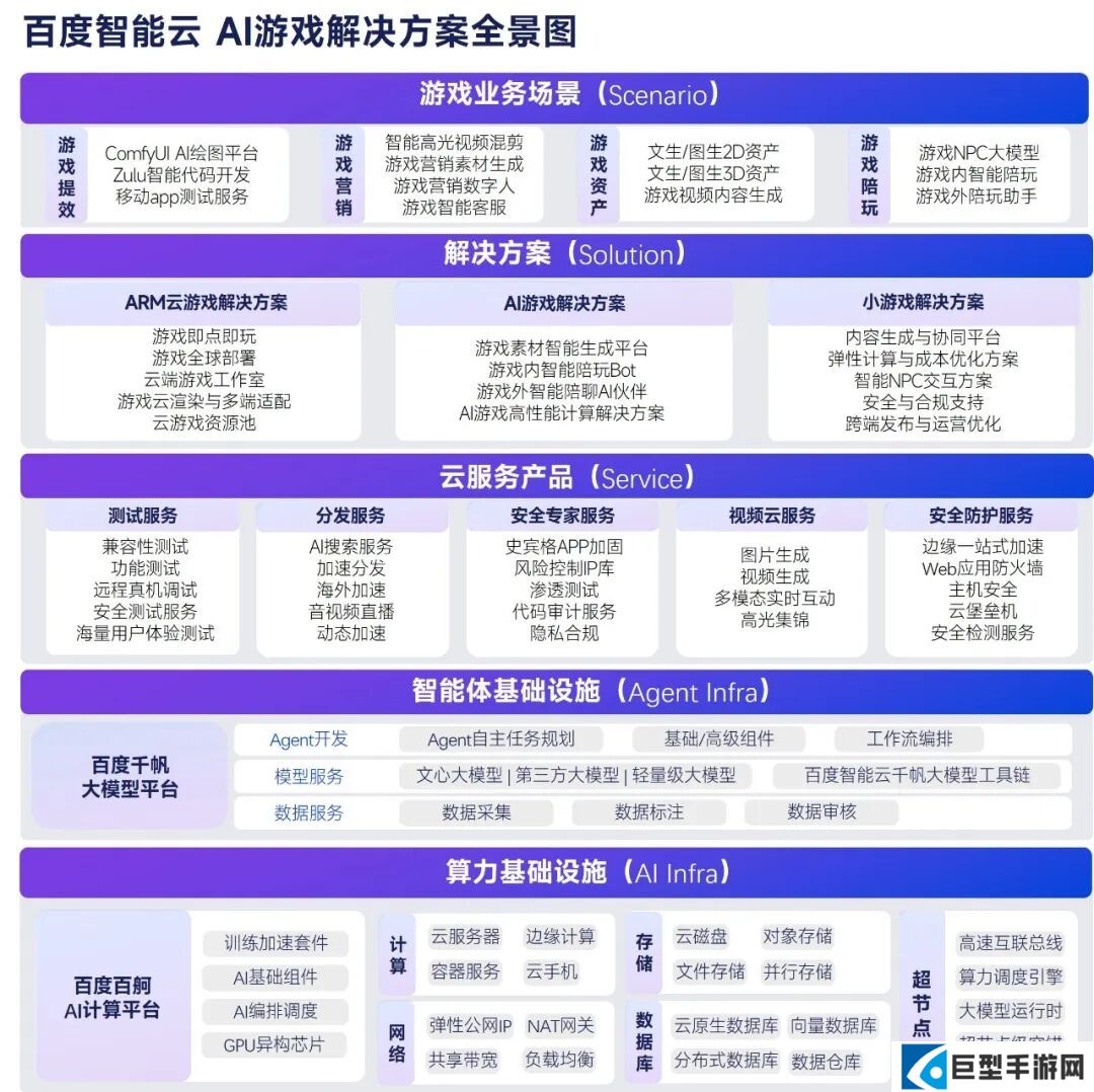 百度智能云围绕游戏研发提效、游戏营销、游戏资产生成、游戏陪玩四大板块,联合行业合作伙伴提供AI能力,是最早推出完整游戏行业AI解决方案的云厂商,成为全栈游戏AI云的代表性平台。
