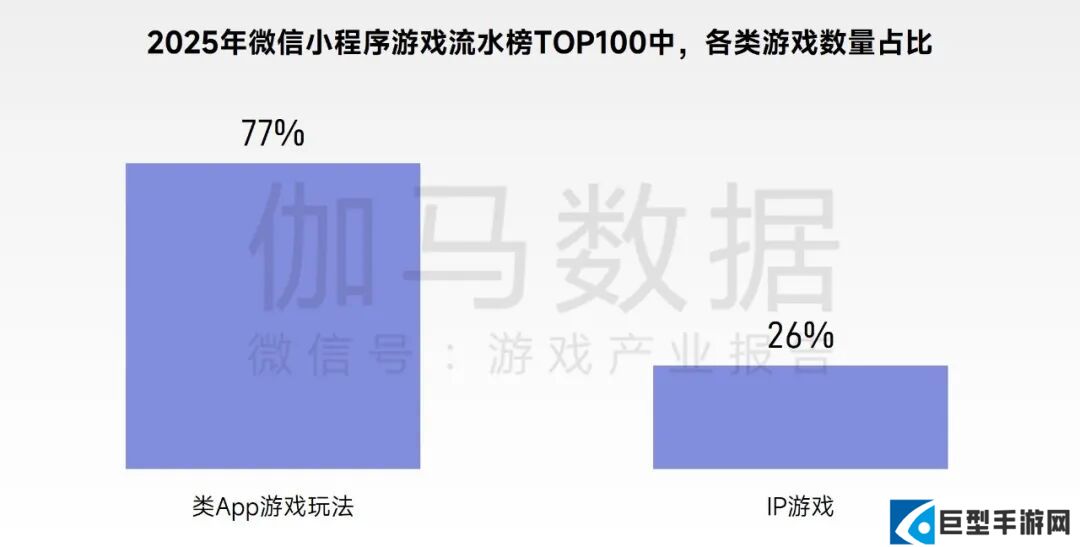 2025年微信小程序游戏流水榜TOP100中,类App玩法产品占77%、IP产品占26%