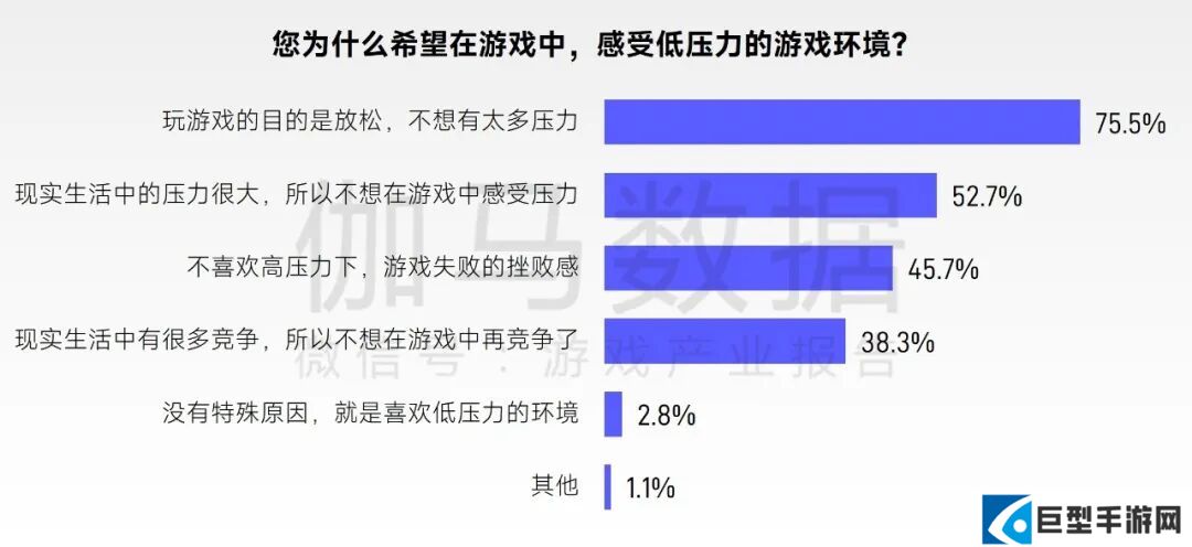 游戏功能从“竞技场”转向“避风港”。对此类游戏的偏好与现实环境变化关联密切。以对“低压力”需求为例,超半数受访者明确表示现实生活中的高压力是其偏好低压力游戏环境的主因。这意味着,正是无处不在的现实压力,使得用户更希望于游戏之中寻一方净土,获得放松与闲适,进而催生了对情感性满足的游戏偏好。